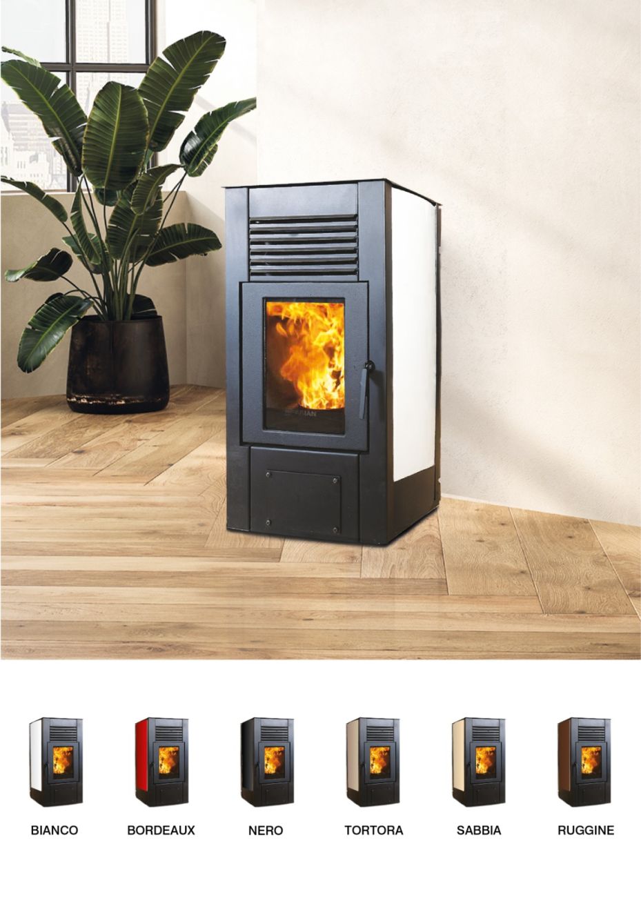 8,5 kW e 4 stelle ambientali. Graziosa e preziosa con il suo corpo in ghisa e maiolica.